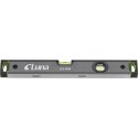 Solidna poziomnica do prac wymagających wyższej dokładności. Odporny na skręcanie profil aluminiowy 24x50 mm (710 g/m) z płasko frezowanym spodem o maksymalnej płaskości. Duża cylindryczna libella ze szkłem powiększającym zapewnia precyzyjny i łatwy odczyt przy patrzeniu pod dowolnym kątem. Podwójne podziałki ułatwiają odczyt spadku 2%. Wykonana z udaroodpornych materiałów o bardzo dobrej odporności na promieniowanie UV. Promień libelli 200 mm zapewnia czułość 10 mm/m, tzn. po podniesieniu o 10 mm jednego końca poziomnicy o długości 1 m pęcherzyk przemieści się o 2 mm. Końcówki amortyzujące mają punkty o zwiększonym tarciu, umożliwiające pewne przyłożenie poziomnicy do płaszczyzny ściany. Wbudowane magnesy od spodu zapewniają przywieranie do konstrukcji stalowych. Otwory przelotowe do zamocowania zabezpieczenia narzędzia....