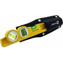 - Wyposażenie: 1 pozioma libella sześciopierścieniowa, 1 libella pionowa, libella kątowa 45°, 1 frezowana powierzchnia pomiaru z rowkiem w kształcie litery V, system magnesów neodymowych (nawet do 5 razy silniejszych od zwyczajnych magnesów ferrytowych), kabura na pasek.