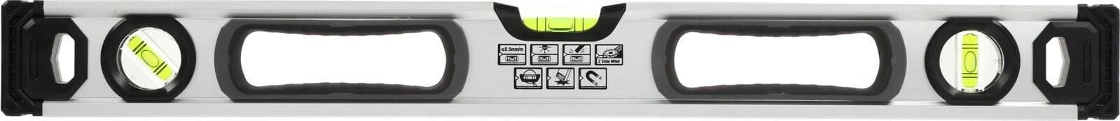 Precyzyjne libelki – poziomnica wyposażona jest w trzy libelki (90°, 0°, 45°), co umożliwia dokładne pomiary zarówno pionowe, poziome, jak i pod kątem. Dokładność pomiarów wynosi 0,5 mm/m, co czyni to narzędzie idealnym do zadań wymagających najwyższej precyzji. Dodatkowo, wbudowana libela powiększająca pozwala na łatwy i szybki odczyt, nawet w słabym oświetleniu, a specjalne pierścienie na libelce poziomu ułatwiają wyznaczanie 2% spadku, co jest szczególnie przydatne przy pracy w instalacjach hydraulicznych i budowlanych.