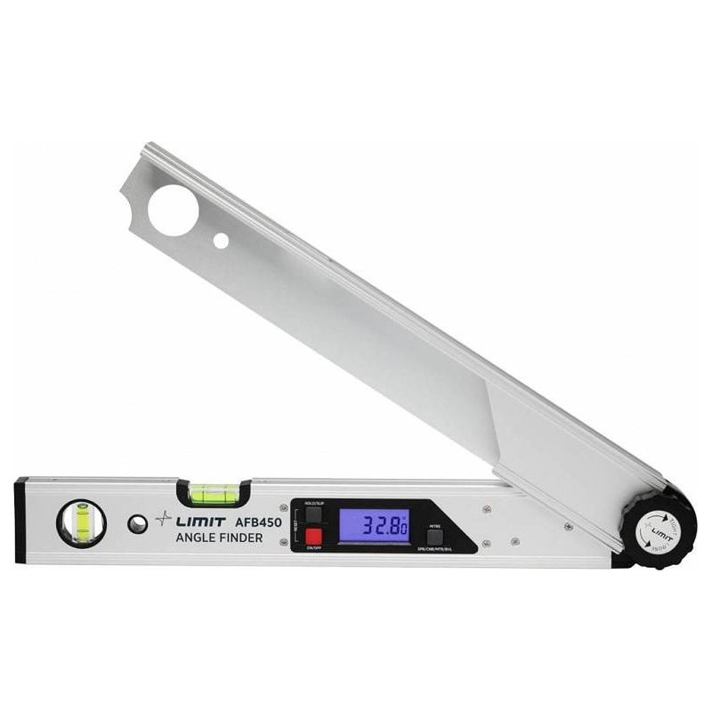 - Solidny kątomierz cyfrowy mierzący kąty do 225 stopni, który szybko i łatwo wylicza również kąty pochodne, takie jak kąt uzupełniający, kąt środkowy i kąt ustawienia piły przy cięciu uciosu