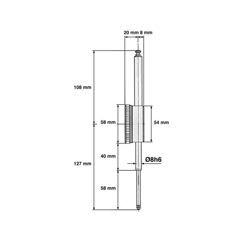Tarcza podziałki obracana, z dwoma nastawianymi wskaźnikami pola tolerancji. Dodatkowa wskazówka dla pełnych mm. Korpus z aluminium. Wymienialna końcówka pomiarowa. Bez ucha mocującego.