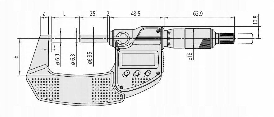 - Wrzeciono pomiarowe: Ø 6,35 mm, skok gwintu: 0,5 mm
