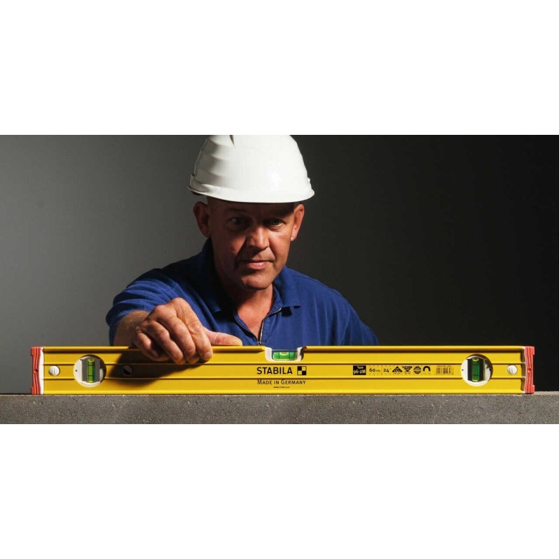 Ten model to doskonały wybór, kiedy potrzebna jest poziomnica wyposażona w potężne magnesy neodymowe. Na placu budowy poziomnica bywa intensywnie eksploatowana, a czasem może również spaść. Dlatego ważne jest, aby mimo tego wciąż dostarczała precyzyjnych wyników. Dwie libelle pionowe pozwalają na odczyt w każdej pozycji. Solidny, wzmocniony prostokątny profil z aluminium oraz technologia montażu STABILA z trwale zalewaną libellą sprawiają, że to urządzenie staje się doskonałym partnerem w trudnych pracach budowlanych. Poziomnice STABILA: precyzja na wiele lat.