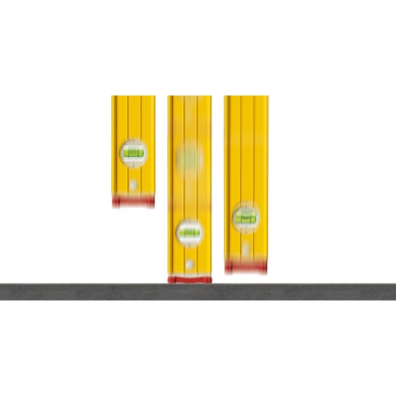 Łatwe czyszczenie dzięki elektrostatycznej powłoce proszkowej. - Poziomnica z dwiema precyzyjnie frezowanymi płaszczyznami powierzchni pomiaru (powlekanymi powyżej długości 183 cm).