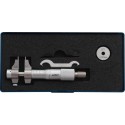 Mikrometr do pomiarów wewnętrznych, odkuwany, z podziałką chromowaną na mat. Powierzchnie pomiarowe hartowane i precyzyjnie docierane. Sprzęgło cierne i śruba ustalająca. Wykonanie zgodne z DIN 863. Dostarczany z pierścieniem kalibracyjnym....