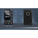 Urządzenie posiada czytelny wyświetlacz LCD, który umożliwia jednoczesny odczyt napięcia i prądu. Dzięki temu użytkownik ma pełną kontrolę nad parametrami zasilania, co ułatwia pracę i zwiększa komfort użytkowania.