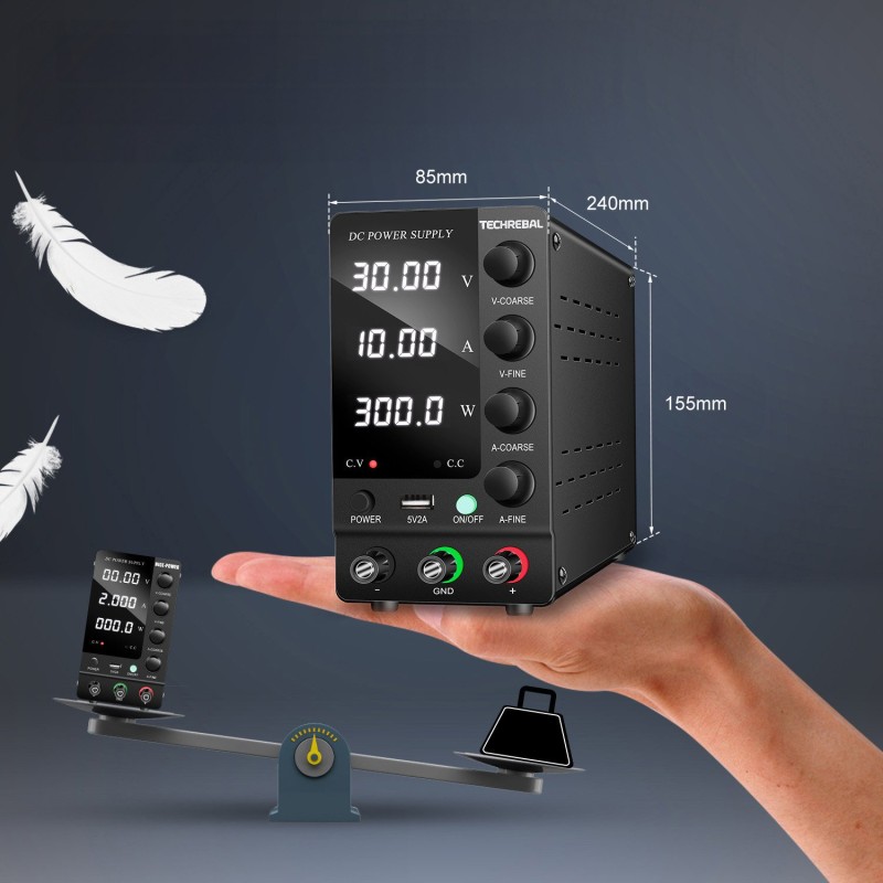 Mocny Zasilacz Laboratoryjny Serwisowy Techrebal SPS-C1203 120V 3A USB 5V Kable