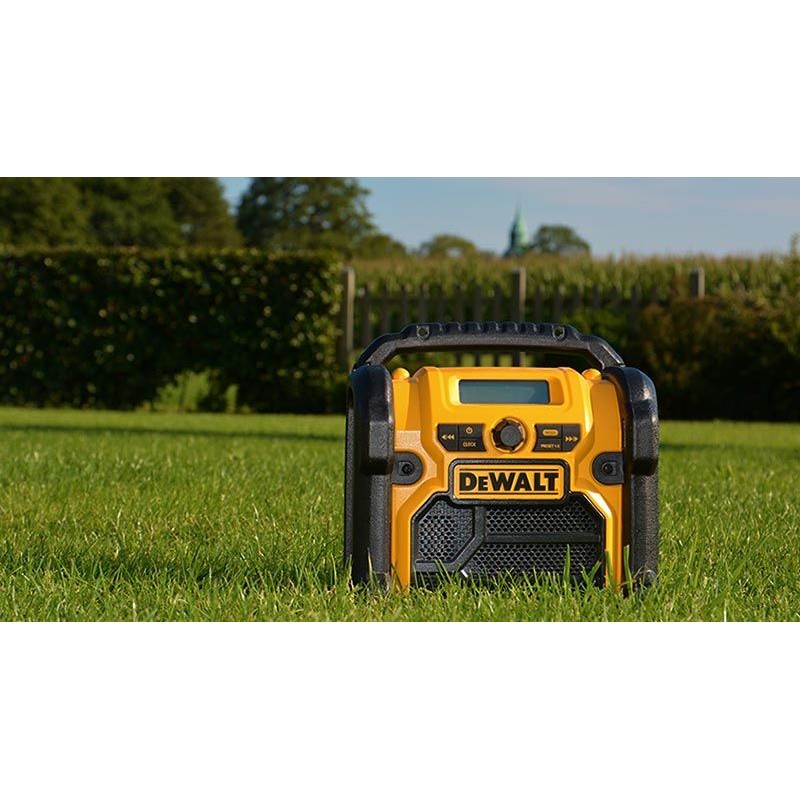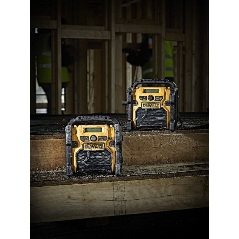Wytrzymałe radio, które będzie świetnym rozwiązaniem na wszelkiego rodzaju placach budowy. Zasilane jest akumulatorami o wielu napięciach, co poprawia jego uniwersalność. Posiada gniazdo 3,5 mm, co pozwala na podłączenie go do przenośnych urządzeń Audio. Wytrzymała klatka chroni radio przed uszkodzeniami i upadkami. Przewód zasilający 1,8 m nawinięty na zaczepach bocznych umożliwia łatwiejsze przechowywanie oraz użytkowanie.
