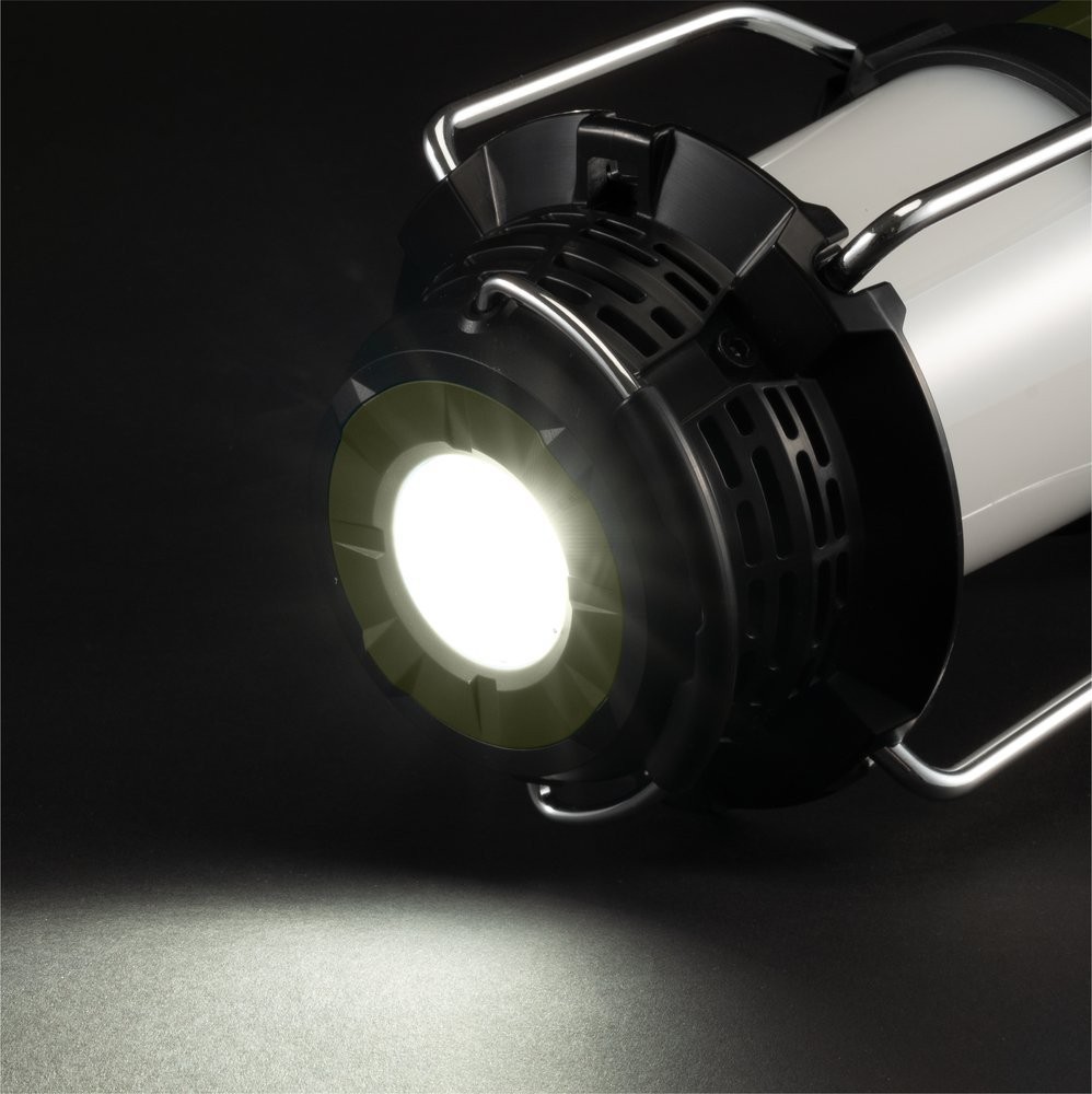 Akumulatorowe radio z możliwością odbioru stacji radiowych z zakresu FM oraz DAB+. Wyposażone w Bluetooth z zasięgiem do 30 m. Lampa posiada 4 tryby świecenia: latarnia 360°, tryb latarni - 3 strony oraz latarkę w trybie pochodni i stroboskopu. Posiada 3-stopniową regulację barwy światła w trybie latarni. Dostarczane bez akumulatorów i ładowarki.
