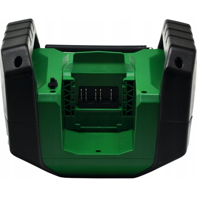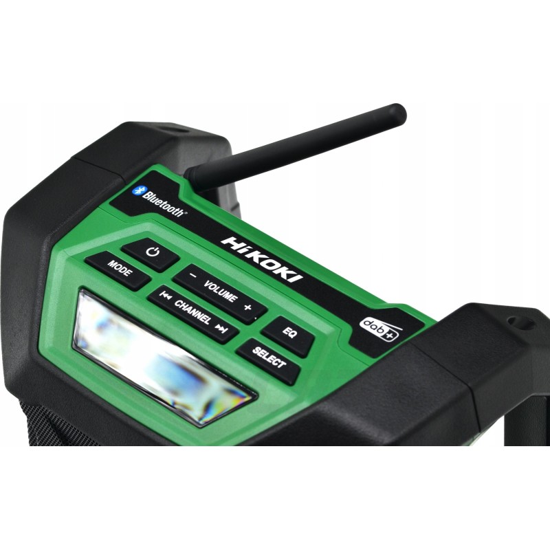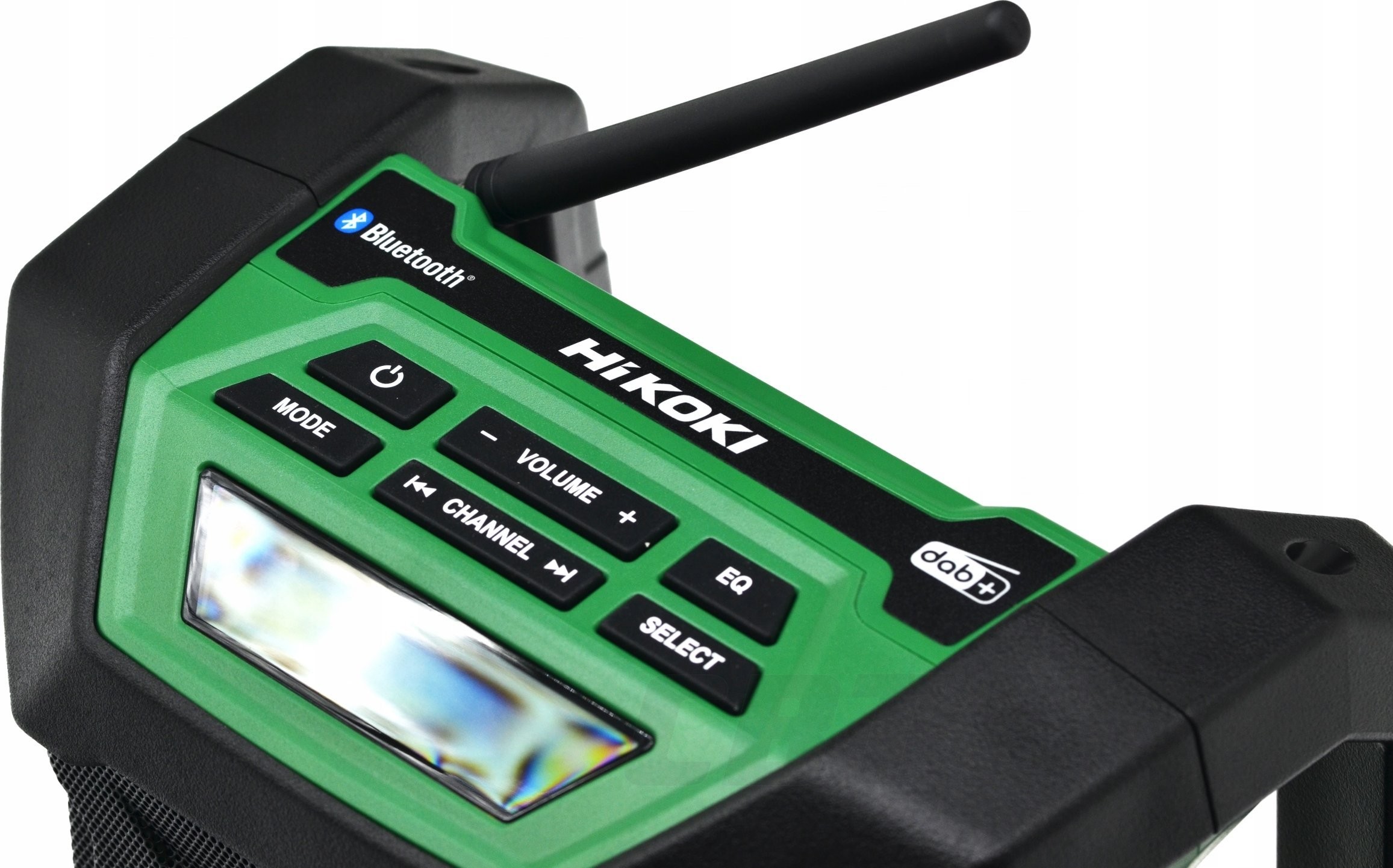 Radio jest w pełni kompatybilne ze wszystkimi wsuwanymi akumulatorami 18 V HiKOKI, co czyni je mobilnym urządzeniem idealnym do użytku w terenie, bez potrzeby dostępu do gniazdka elektrycznego. Należy jednak pamiętać, że akumulatory nie są częścią zestawu.