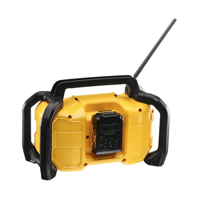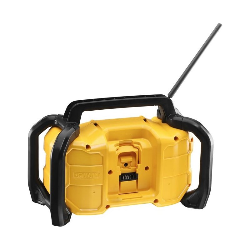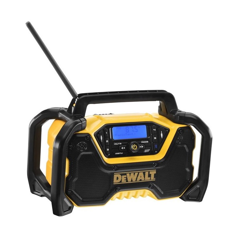 Kompaktowe, cyfrowe radio DeWALT z serii XR, model DCR029, dostarczane bez akumulatora, z możliwością zasilania przez akumulatory Li-Ion z serii XR 18V i FlexVolt 54V oraz przez kabel zasilający z sieci. Zabezpieczone mocną klatką przed uszkodzeniem na placu budowy czy podczas transportu. Dzięki wbudowanej funkcji Bluetooth, można monitorować i śledzić lokalizację urządzenia.