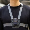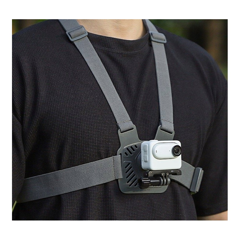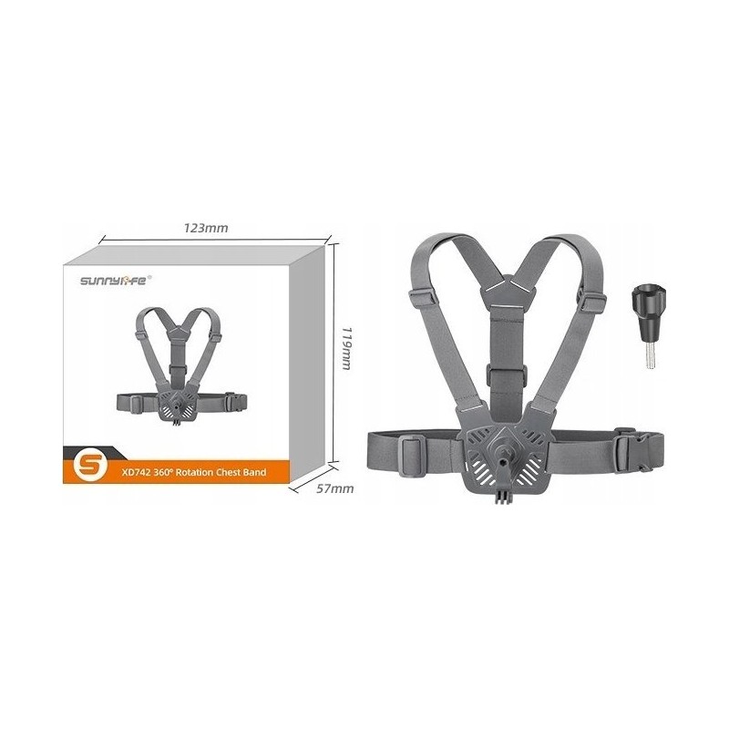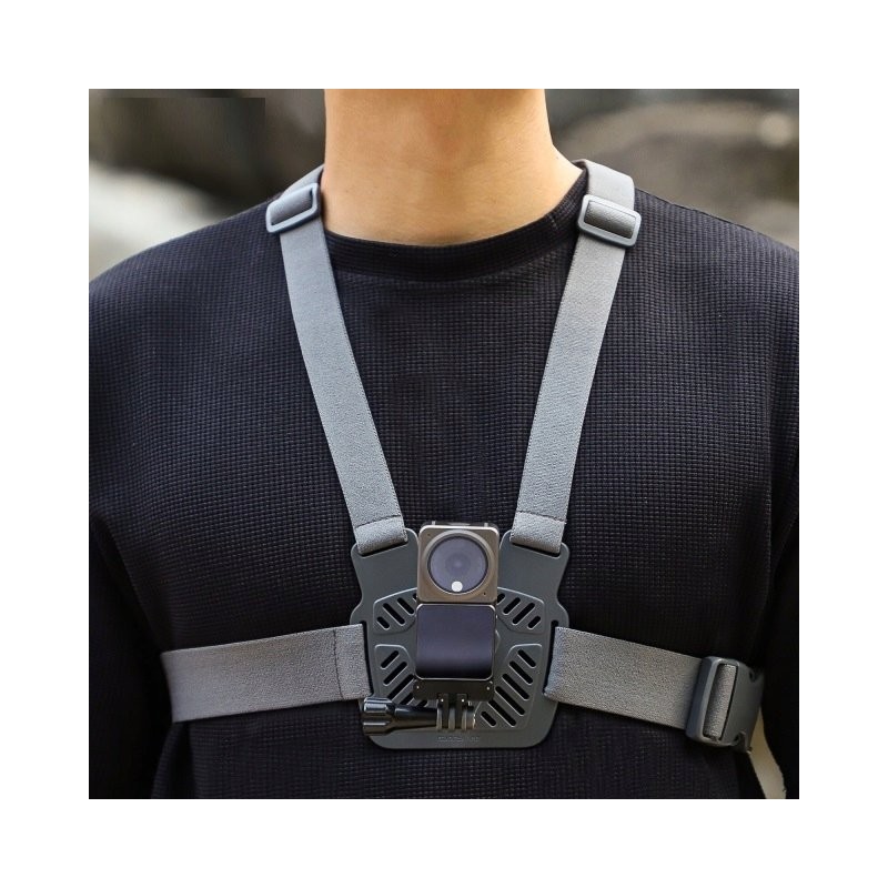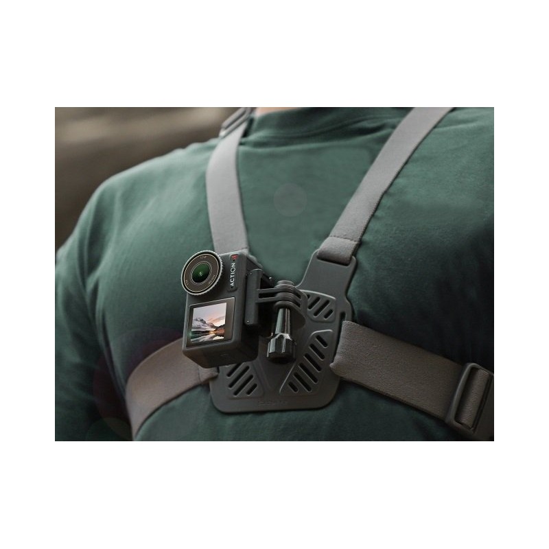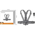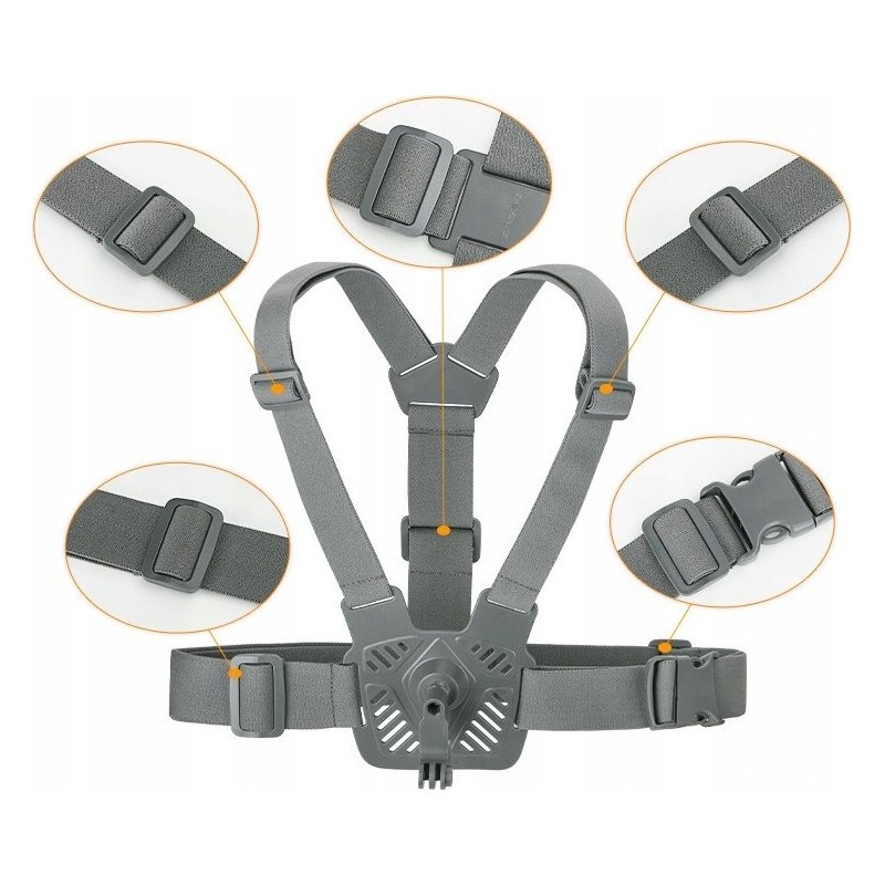 Pas umożliwia zamocowanie kamery na klatce piersiowej. Szeroka regulacja, antypoślizgowe i wygodne paski mocujące oraz ich elastyczność pozwalają na montaż pasów zarówno bezpośrednio na ciele, jak i na grubych zapiętych kurtkach. Może być noszony zarówno przez kobiety, jak i mężczyzn, bez względu na ich gabaryty.