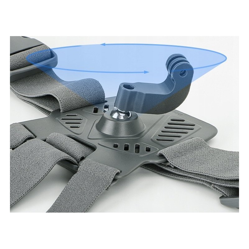 - 1x elastyczny pas do mocowania kamery na klatce piersiowej - pas zintegrowany ze szlufką J-Hook zamocowaną na obrotowej głowicy - obrót o 360 stopni