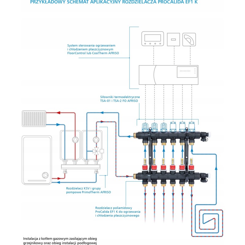 - Rozdzielacze poliamidowe ProCalida EF1 K stosuje się w instalacjach ogrzewania lub chłodzenia płaszczyznowego.