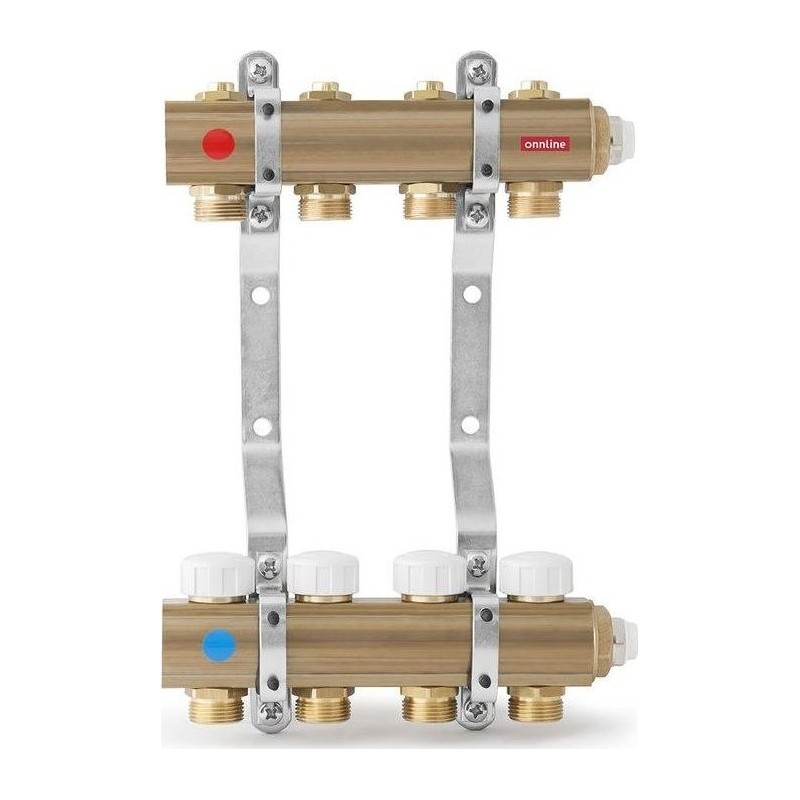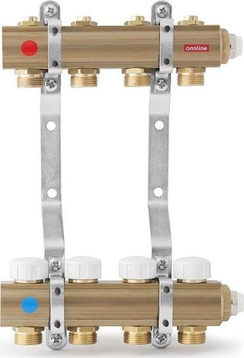 Rozdzielacz ONNLINE do ogrzewania podłogowego z zaworami regulacyjnymi i zaworami do siłowników gwint M30 - 10 obiegów