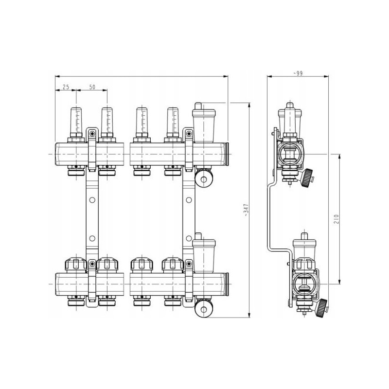 KRPTp - Rozdzielacz 1" do ogrzewań płaszczyznowych i grzejnikowych z wyjściem 3/4" o standardzie Eurokonus KRPTp 12