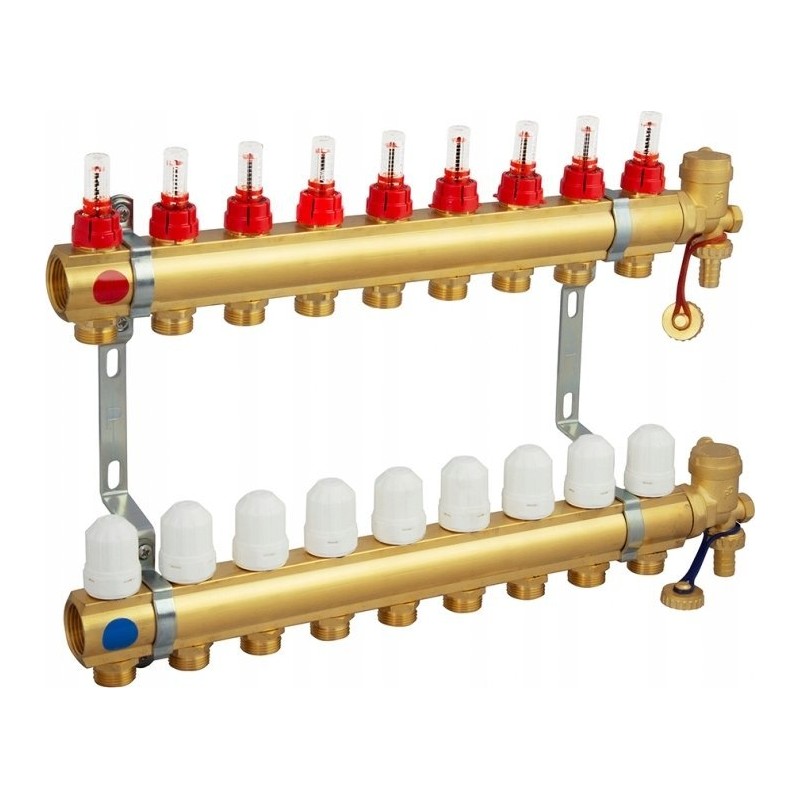 Rozdzielacze mosiężne i stalowe są przeznaczone do instalacji ogrzewania grzejnikowego oraz płaszczyznowego, a także do systemów wody użytkowej. Mogą być wykorzystywane tam, gdzie medium roboczym jest woda lub jej mieszanka z glikolem (do 50%). Wszystkie belki rozdzielaczy mają gwinty przyłączeniowe po obu stronach, co umożliwia podłączenie źródła zasilającego w dogodnym miejscu. Zestawy rozdzielacza składają się z belki zasilającej i powrotnej, montowanych na stalowych wspornikach za pomocą uchwytów. Belki wykonano z mosiądzu CW617N lub stali nierdzewnej o gatunku 1.4301. Rozdzielacze pozwalają na podłączenie od 2 do 12 obwodów w systemie. W zależności od typu i przeznaczenia, belki są wyposażone w łączniki, korki, odpowietrzniki (ręczne lub automatyczne), trójniki, przepływomierze, zawory spustowe, oraz regulacyjne wkładki zaworów i termostatyczne zawory z głowicą oraz kulowe kurki, ramiona do pompy.