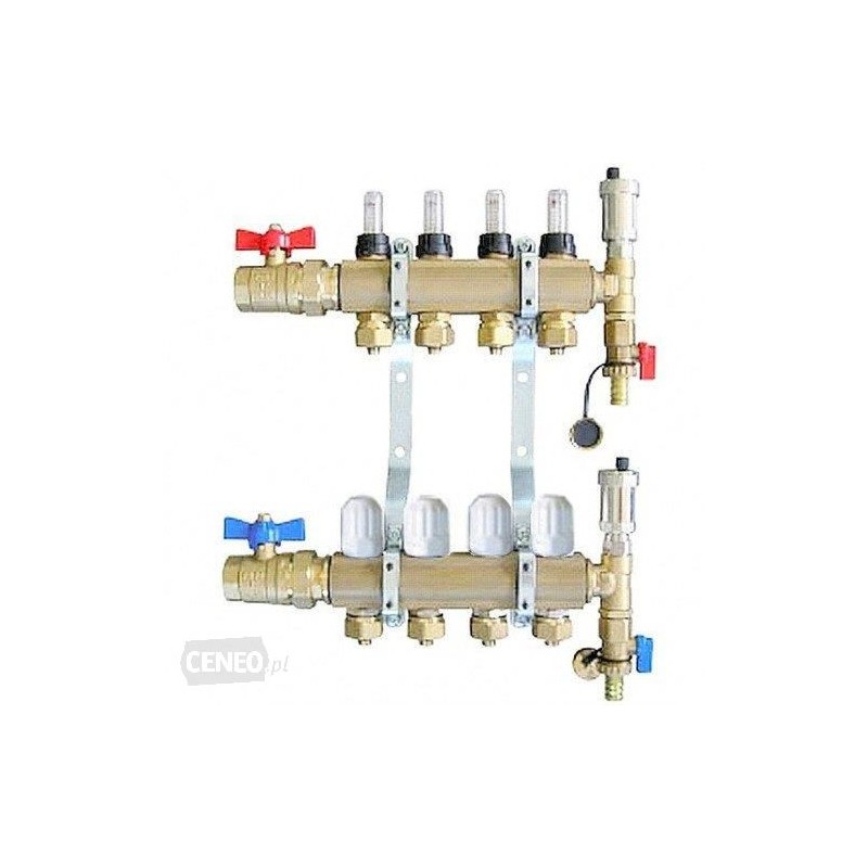 Rozdzielacz na profilu mosiężnym do ogrzewania płaszczyznowego z przepływomierzami