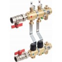 - belka rozdzielacza z wbudowanymi wkładkami zaworów termostatycznych dla założenia głowic termoelektrycznych