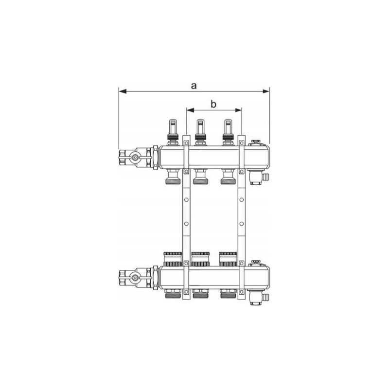 Rozdzielacz mosiężny 1" ogrzewania podłogowego z przepływomierzami 5-sekcji (77331005)