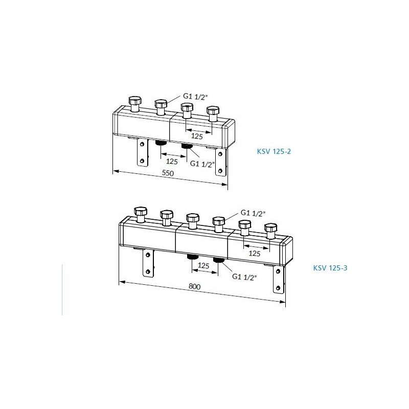 Wszystkie rozdzielacze KSV są fabrycznie testowane pod względem szczelności, posiadają izolację termiczną oraz wieszaki ścienne. Rozdzielacze KSV składają się z 2, 3, 4 lub 5 par przyłączy zasilających i powrotnych obiegów pompowych. Całość znajduje się w zdejmowanej izolacji termicznej. Wersja rozdzielaczy KSV HW wyposażona jest dodatkowo w sprzęgło hydrauliczne do rozdzielania obiegów oraz przyłącze do zamontowania zaworu spustowego lub czujnika temperatury. Przyłącza rozdzielacza ze strony kotła posiadają gwinty zewnętrzne G1 1/2". Przyłącza od strony grup pompowych posiadają nakrętki z uszczelnieniem płaskim G1 1/2".