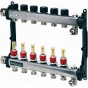 Rozdzielacz 10 sekcyjny obwodowy do ogrzewania podłogowego ze stali nierdzewnej z przepływomierzami, z półśrubunkiem 1" i uszczelką płaską