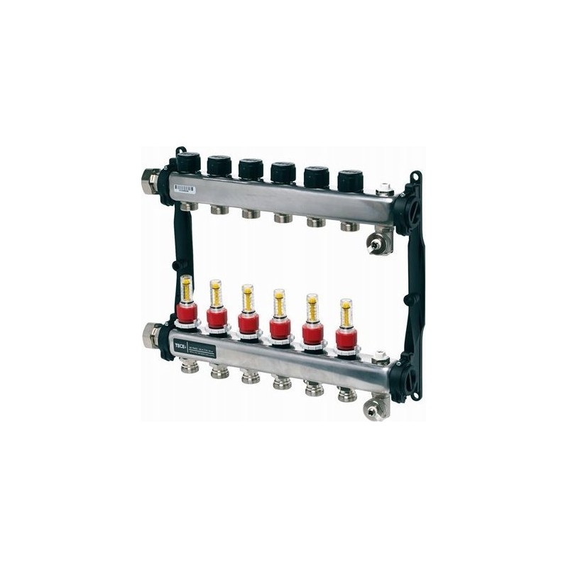 Tece TECEfloor - Rozdzielacz ze stali nierdzewnej 1" ogrzewania podłogowego z przepływomierzami 10