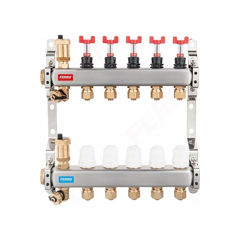 Ten rozdzielacz stworzony jest z dwóch stalowych belek o średnicy wewnętrznej 1", wykonanych z wysokiej jakości stali nierdzewnej AISI 304, co zapewnia im wysoką odporność na rdzewienie, co przekłada się na niezawodne działanie przez wiele lat. Trwałość urządzenia podnoszą także specjalne uchwyty gumowe, które minimalizują wibracje oraz hałas. Uchwyty te dodają konstrukcji stabilności i zapewniają utrzymanie odpowiedniej odległości między belkami. Produkt został zaprojektowany do instalacji grzewczych, w tym mieszanych oraz do systemów ogrzewania podłogowego, gdzie pełni rolę kluczowego połączenia dla systemu grzewczego, a także ułatwia pracę instalatorom.