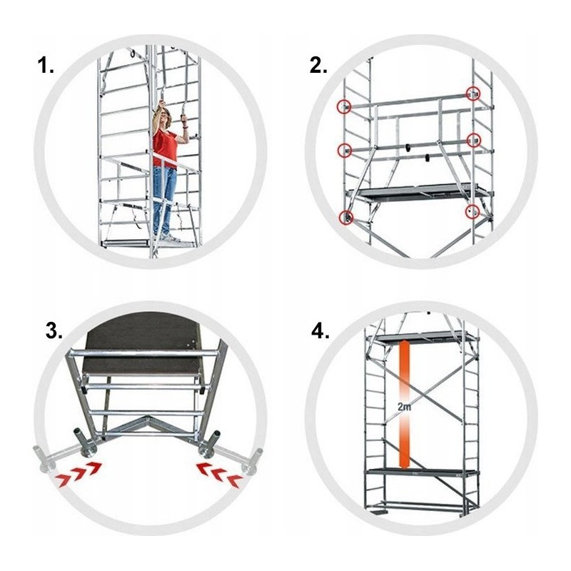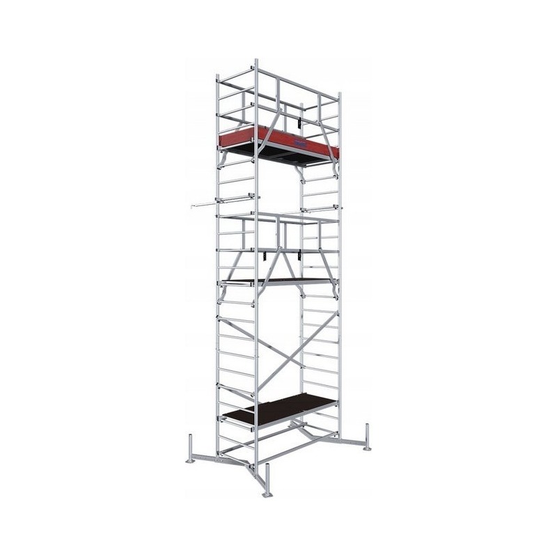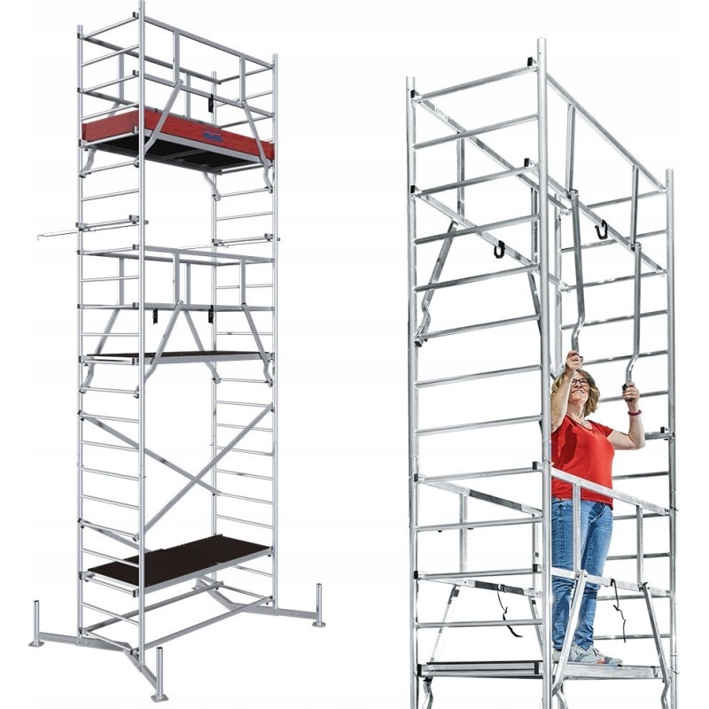 - ze względu na niewielką wysokość i przesuwne stabilizatory podstawa rusztowania w zmontowanym stanie mieści się w standardowych otworach drzwiowych, co czyni rusztowanie idealnym rozwiązaniem do prac we wnętrzach