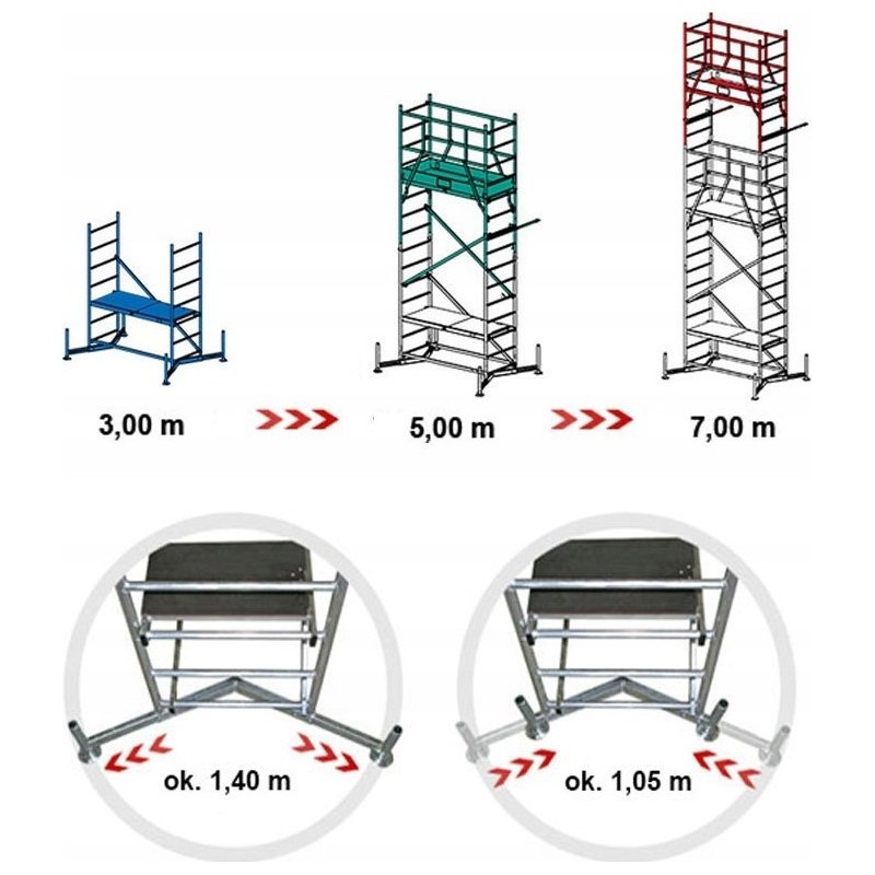 1. Rusztowanie o zasięgu roboczym 3,00m | 2. Rusztowanie o zasięgu roboczym 5,00m | 3. Rusztowanie o zasięgu roboczym 7,00m