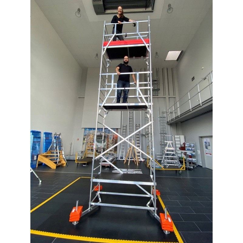 Ze względu na niewielką wysokość i przesuwne stabilizatory podstawa rusztowania w zmontowanym stanie mieści się w standardowych otworach drzwiowych, co czyni rusztowanie idealnym rozwiązaniem do prac we wnętrzach.