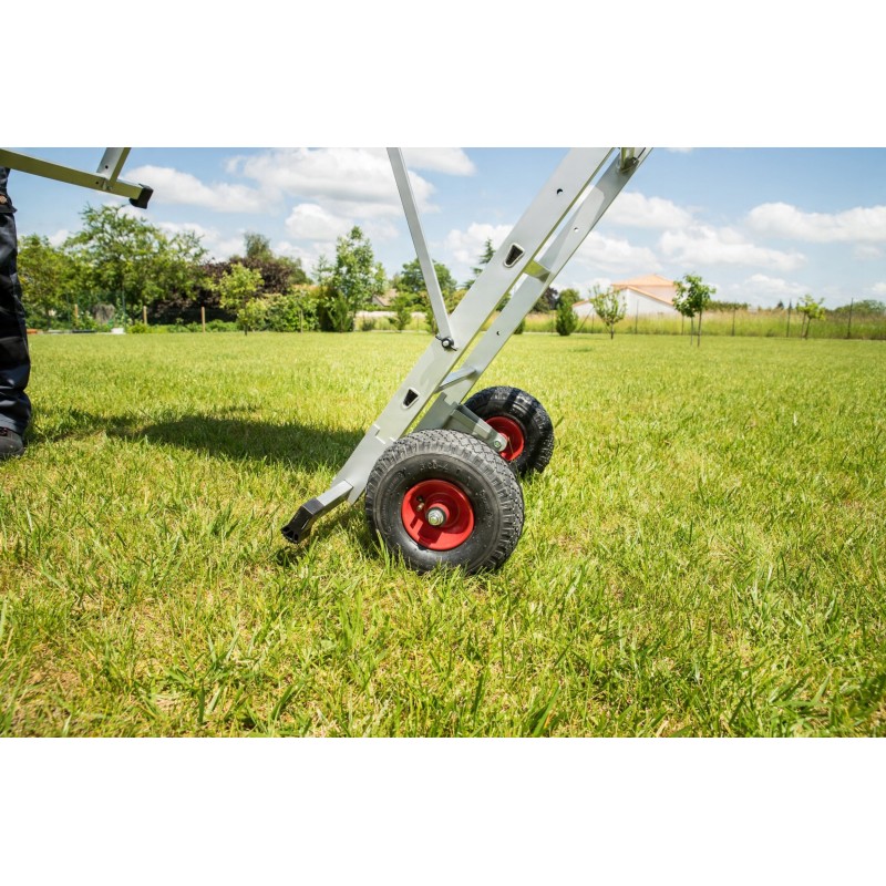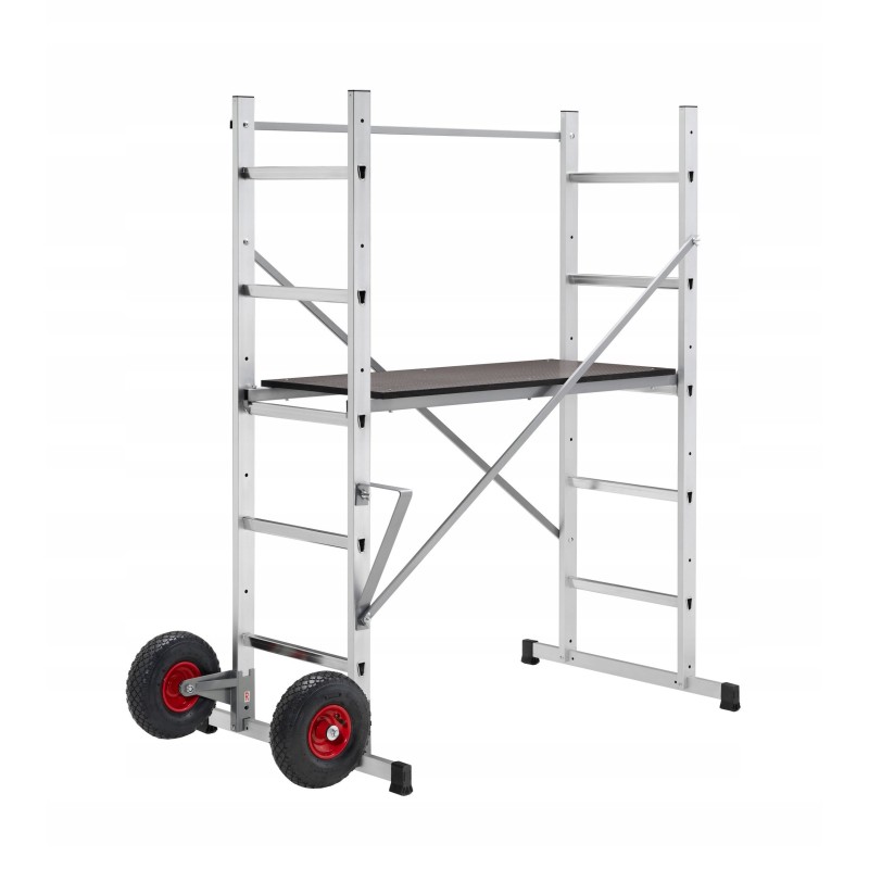 Produkt został wyposażony w dwa terenowe kółka transportowe, co znacząco ułatwia jego przemieszczanie. Niezależnie od tego, czy potrzebujesz przenieść rusztowanie w inne miejsce w ogrodzie, czy też schować je po zakończonej pracy, mobilność Hailo HobbyStep H3 sprawia, że jest to zadanie proste i szybkie.