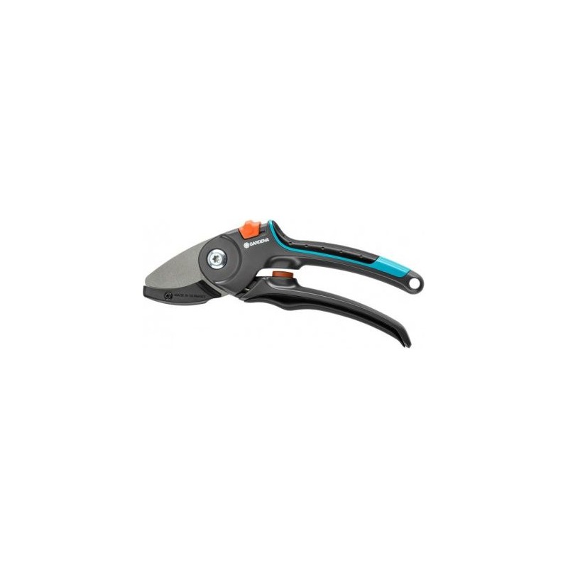 GARDENA Comfort sekator ogrodowy, kowadłowy z górnym ostrzem pokrytym powłoką antyadhezyjną idealnie nadaje się do cięcia starszych, zdrewniałych pędów i gałązek. Sprężyna jest na stałe zintegrowana w uchwycie, co chroni ją przed zabrudzeniami i zagubieniem. Wygodne, ergonomiczne rękojeści z miękkimi elementami doskonale leżą w dłoni, zapewniając komfortową pracę. Zamek obsługiwany jedną ręką ułatwia zablokowanie sekatora i jego bezpieczne przechowywanie. 2 pozycje cięcia prędkie cięcie mniejszych pędów lub mocniejsze przecinanie gałęzi o średnicy do 23 mm.