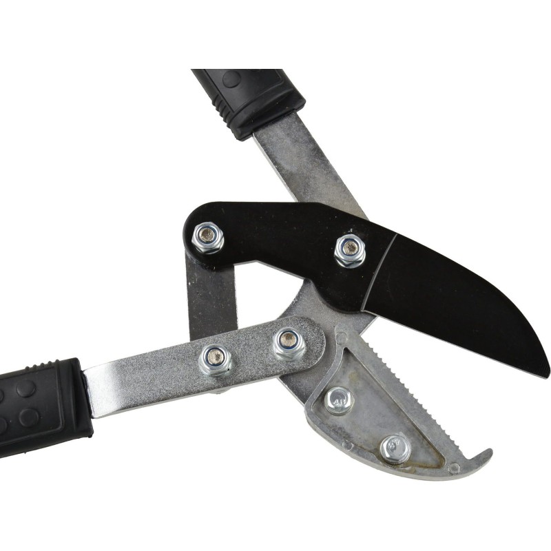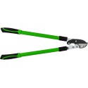 Przegubowy sekator kowadełkowy do konarów 745 mm Kowadełkowy(przegubowy) sekator do gałęzi to profesjonalne narzędzie, które wykorzystasz do prac pielęgnacyjnych w ogrodzie. Świetnie sprawdzi się podczas czynności przygotowujących ogród na wiosnę. Produkt nadaje się również do przycinania drzewek owocowych, tak by do wnętrza korony dostawało się więcej światła. Produkt został wykonany ze stali utwardzonej, wykończonej teflonem, dlatego nożyce są odporne na działanie korozji i posłużą przez długi czas. Rękojeści sekatora wykonane zostały z polipropylenu (PP) oraz termoplastycznego kauczuku (TPR), zapewnia to pewny i wygodny chwyt nawet przy mokrych i śliskich dłoniach Cechy produktu: ostrza wykonane zostały z wysokiej jakości stali HCS długość całkowita sekatora 745 mm rękojeści sekatora wykonane z polipropylenu (PP) oraz termoplastycznego kauczuku (TPR) doskonałe do cięcia twardych pędów i gałęzi ostrze z powłoką teflonową Specyfikacja techniczna: Maksymalna średnica cięcia: 50 mm Materiał wykonania ostrza: stal HCS, teflon Materiał wykonania rękojeści: stal, polipropylen, kauczuk termoplastyczny Typ ostrza: kowadełkowe Długość całkowita: 745 mm Długość ostrza: 85 mm Długość rękojeści: 560 mm Zastosowanie: cięcie gałęzi, konarów