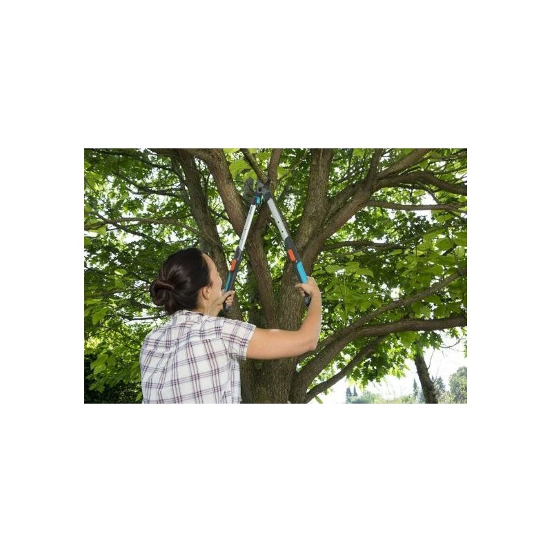 Nożyce do przycinania Gardena TeleCut 520-670 B charakteryzują się dużą siłą cięcia, ergonomicznym kształtem i dzięki aluminiowym rurkom o niskiej wadze. Ma dźwignie teleskopowe, regulowaną długość całkowitą 52 cm - 67 cm i nadaje się do cięcia świeżego drewna o średnicy do 42 mm. Zapewnia czyste i gładkie cięcie dzięki nieprzywierającym ostrzom. Niska waga, doskonała ergonomia i nieprzywierająca powłoka ułatwiają cięcie gałęzi. Ponadto TeleCut 520-670 B jest wyposażony w zderzaki, które chronią nadgarstki.
