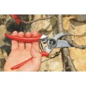 Ba! Pomyślano nawet o tak, wydawałoby się, nieistotnym szczególe jak kolor uchwytu. Otóż jest on jak najbardziej istotny. Jeśli położymy narzędzie w trawie, a będzie miało kolor zielony, to czy łatwo je będzie znaleźć? No raczej będzie ciężko. Dlatego sekatory firmy Felco mają uchwyt w kolorze czerwonym, aby odnalezienie narzędzia Felco było szybkie.