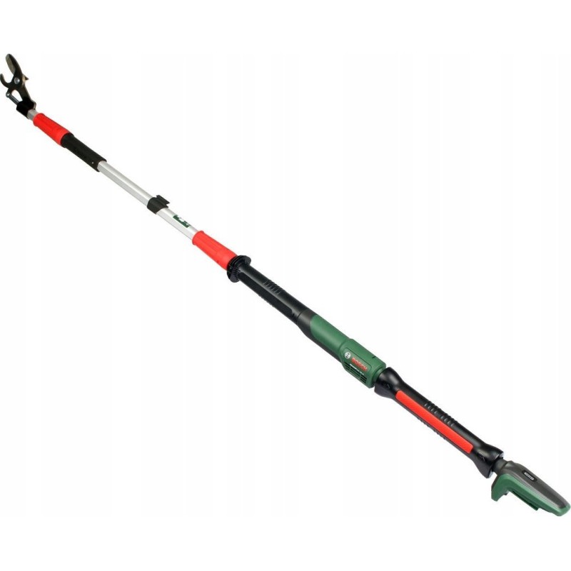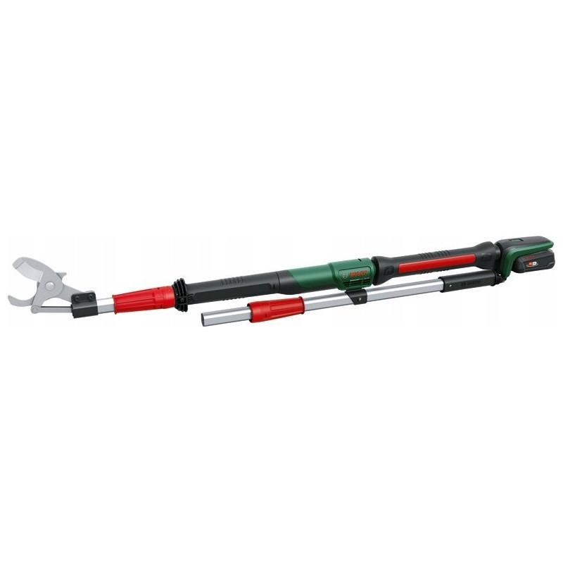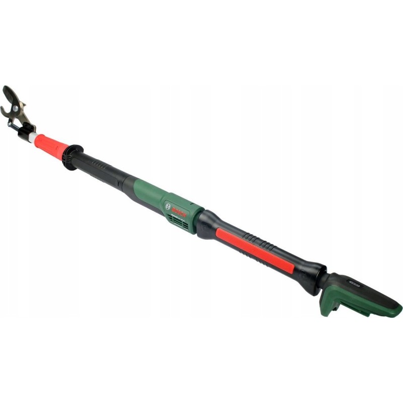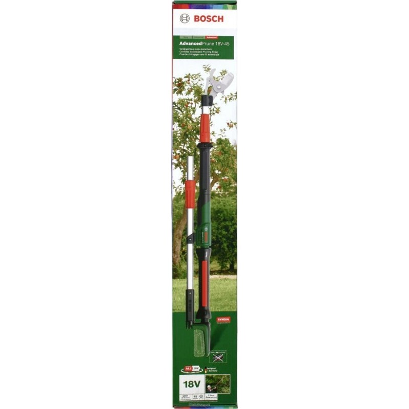 AdvancedPrune 18V-45 to wydajny sekator, który zmniejsza wysiłek fizyczny podczas cięcia gałęzi. Wyjątkowy włącznik 360° w połączeniu ze smukłą konstrukcją umożliwia cięcie gałęzi w wąskich przestrzeniach, niezależnie od wymaganego kąta pracy. Dzięki trwałym nożom ze stali szlachetnej można bez wysiłku ciąć miękkie drewno o grubości do 45 mm, zapewniając drzewom zdrowy rozrost. Aby dotrzeć do trudno dostępnych gałęzi, można zwiększyć zasięg narzędzia z 1,2 m do 1,8 m, mocując dodatkowy drążek. Hak na nożu zapewnia łatwy dostęp oraz usuwanie gęstych i splątanych gałęzi. Przy naładowanym do pełna akumulatorze i cięciu gałęzi o grubości 30 mm, narzędzie może wykonać około 600 cięć, a dzięki technologii Quick-Cut prędkość cięcia wynosi poniżej 1,2 s na gałąź. Wskaźnik stanu akumulatora umieszczony na rękojeści zapewnia wygodny podgląd stanu naładowania akumulatora podczas pracy. Wbudowana technologia Bosch Syneon Technology zapewnia optymalną moc i maksymalny czas pracy. Elektronarzędzie jest częścią systemu 18V POWER FOR ALL. Możliwość zastosowania jednego akumulatora do wszystkich elektronarzędzi 18V POWER FOR ALL.