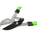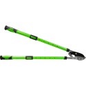 Kowadełkowy sekator do konarów teleskopowy 680-940 mm Kowadełkowy sekator do gałęzi z uchwytem teleskopowym to profesjonalne narzędzie, które wykorzystasz do prac pielęgnacyjnych w ogrodzie. Świetnie sprawdzi się podczas czynności przygotowujących ogród na wiosnę. Produkt nadaje się również do przycinania drzewek owocowych, tak by do wnętrza korony dostawało się więcej światła. Produkt został wykonany ze stali utwardzonej, wykończonej teflonem, dlatego nożyce są odporne na działanie korozji. Rękojeści sekatora wykonane zostały z polipropylenu (PP) oraz termoplastycznego kauczuku (TPR) , zapewnia to pewny i wygodny chwyt nawet przy mokrych i śliskich dłoniach Cechy produktu: ostrza wykonane zostały z wysokiej jakości stali HCS teleskopowe rękojeści długość całkowita sekatora 680 – 940 mm rękojeści sekatora wykonane z polipropylenu (PP) oraz termoplastycznego kauczuku (TPR) doskonałe do cięcia twardych pędów i gałęzi ostrze z powłoką teflonową Specyfikacja techniczna: Maksymalna średnica cięcia: 55 mm Materiał wykonania ostrza: stal HCS, teflon Materiał wykonania rękojeści: stal, polipropylen, kauczuk termoplastyczny Typ ostrza: kowadełkowe Długość całkowita: 680 - 940 mm Długość ostrza: 90 mm Długość rękojeści: 490 - 740 mm Zastosowanie: cięcie gałęzi, konarów