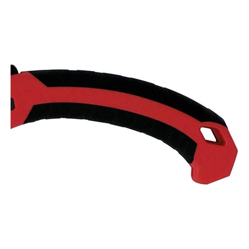 Praktyczna, poręczna i bezpieczna dzięki zamknięciu z zatrzaskiem blokującym i ergonomicznej rękojeści powleczonej gumą (wygoda użytkowania nawet bez rękawic). Składane ostrze: pozwala na bezpieczne przechowywanie piły.