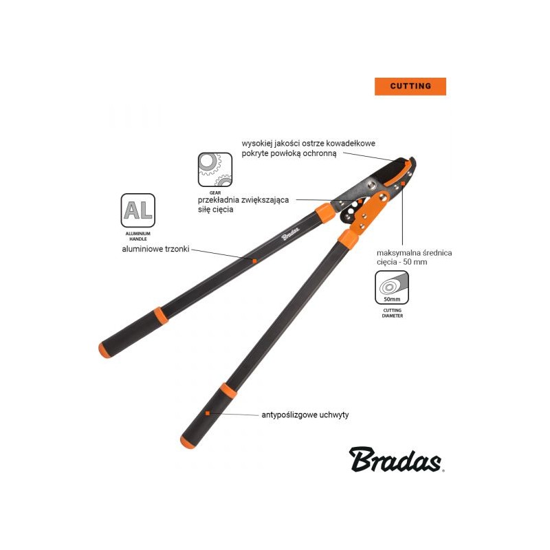 Sekator z aluminiowymi trzonkami do gałęzi z przekładnią V-SERIES ostrze kowadełkowe KT-V1230 BRADAS