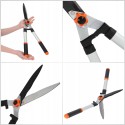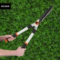 Postaw na lekkie i poręczne rozwiązanie! Rączki aluminiowych nożyc są wygodne, z obu stron zakończone miękkim, antypoślizgowym materiałem. Wniosek Twoje dłonie nie wyślizgują się z uchwytów - dostarcz sobie tego komfortu! Co więcej, dzięki sporej długości (58 cm) trafisz z nożycami do każdego zakamarka ogrodu. Nie pominiesz żadnej gałązki, a Twoja praca pójdzie 3 razy szybciej niż przy użyciu małego sekatorka. I widzisz zieleń na horyzoncie!