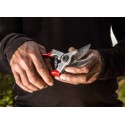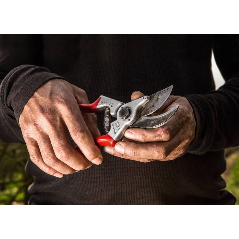 Profesjonalny Sekator Felco dzięki ergonomicznej konstrukcji jest komfortowy i łatwy w użyciu. Solidne, lekkie uchwyty zostały wykonane z kutego aluminium. Narzędzie pewnie leży w dłoni.Wszystkie części mogą być wymieniane. Sekator Felco gwarantuje pewne cięcie. Wyposażony w blokadę, która umożliwia bezpieczne oraz ergonomiczne przechowywanie narzędzia. Wytrzymała konstrukcja oraz wysokie przełożenie gwarantują długą i niezawodną pracę.