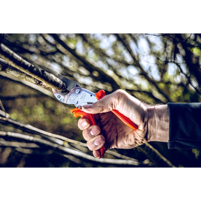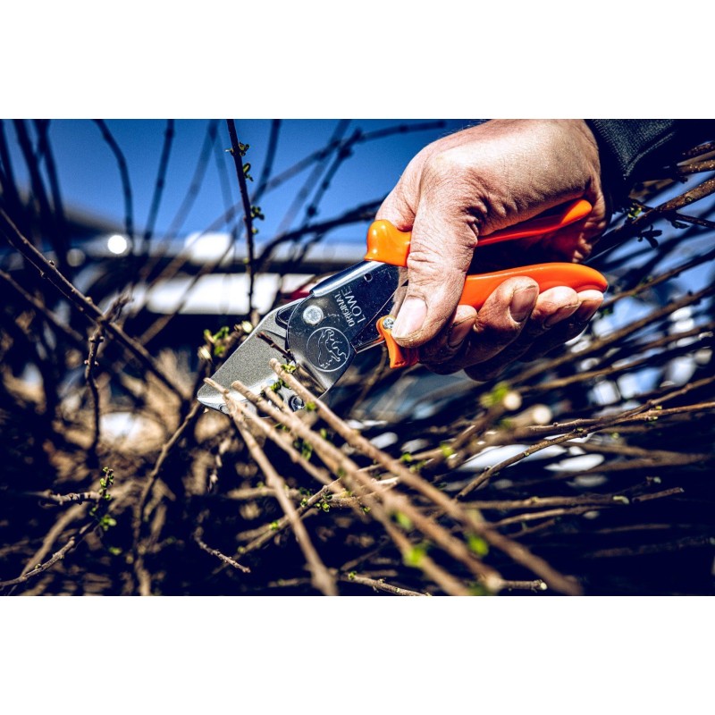 Innowacyjny sekator jednoręczny Lowe 10.107 to uniwersalny profesjonalny mały sekator kowadełkowy, o ergonomicznym kształcie, idealny do cięcia grubych gałęzi, a przy tym wygodny w użyciu. Łączy zalety technologii kowadła i tradycyjnej, dzięki połączeniu geometrii obejściowej i ciągnącego cięcia z dociskiem do nieruchomej podkładki.