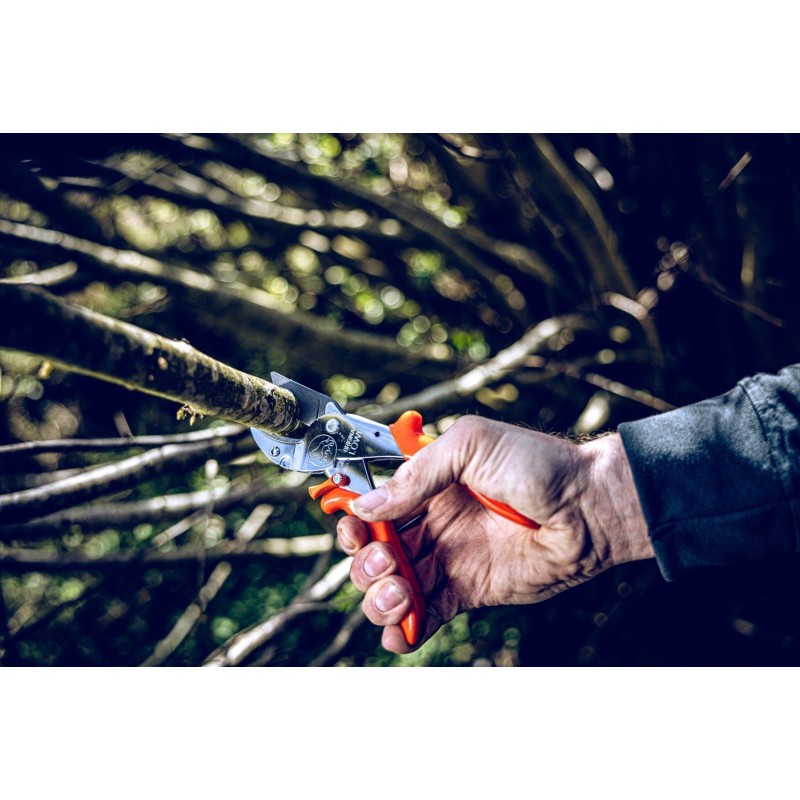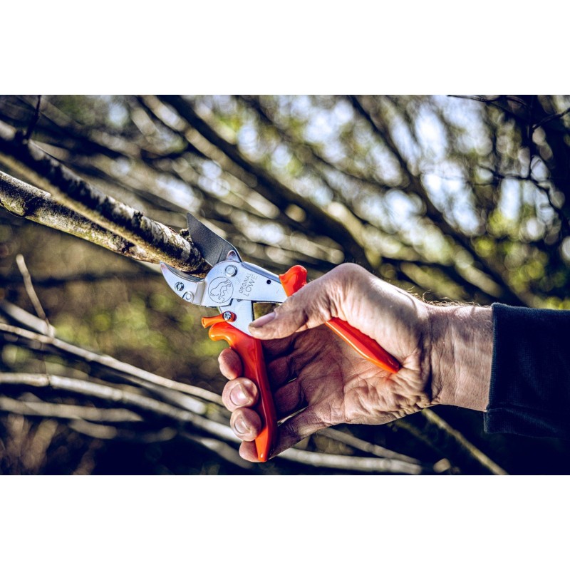- Rozmiar i kształt sekatora sprawia, ze może być używany przez osoby również z małą dłonią. Idealnie leży w dłoni użytkownika, dzięki ergonomicznym kształcie rękojeści z powłoką antypoślizgową.