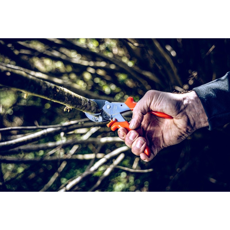 - Posiada ostrze kowadełkowe ułatwiające cięcie, idealne do cięcia grubych gałęzi, znakomita wydajność cięcia. Średnica cięcia gałęzi do 30 mm.