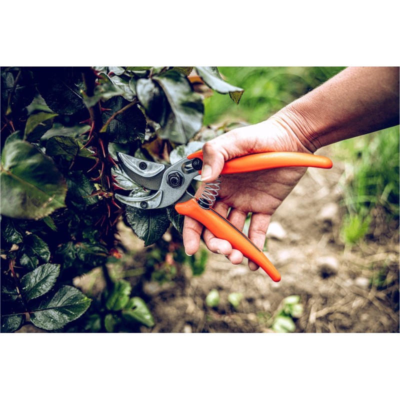 Będzie dobrym wyborem do cięcia mniejszych roślin i krzewów. Jest on lekki i poręczny, a dzięki stosunkowo małym rozmiarom łatwo go schować, chociażby w kieszeń.