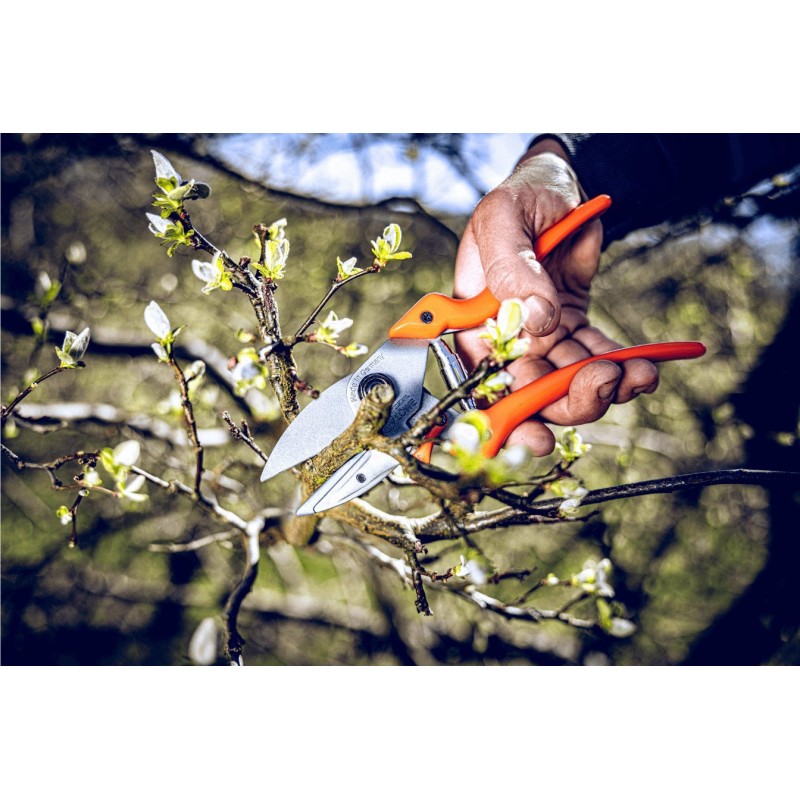 - Rozmiar i kształt sekatora sprawia, ze może być używany przez osoby z małą, średnią jak i dużą dłonią. Idealnie leży w dłoni użytkownika, dzięki ergonomicznym kształcie rękojeści z powłoką antypoślizgową.