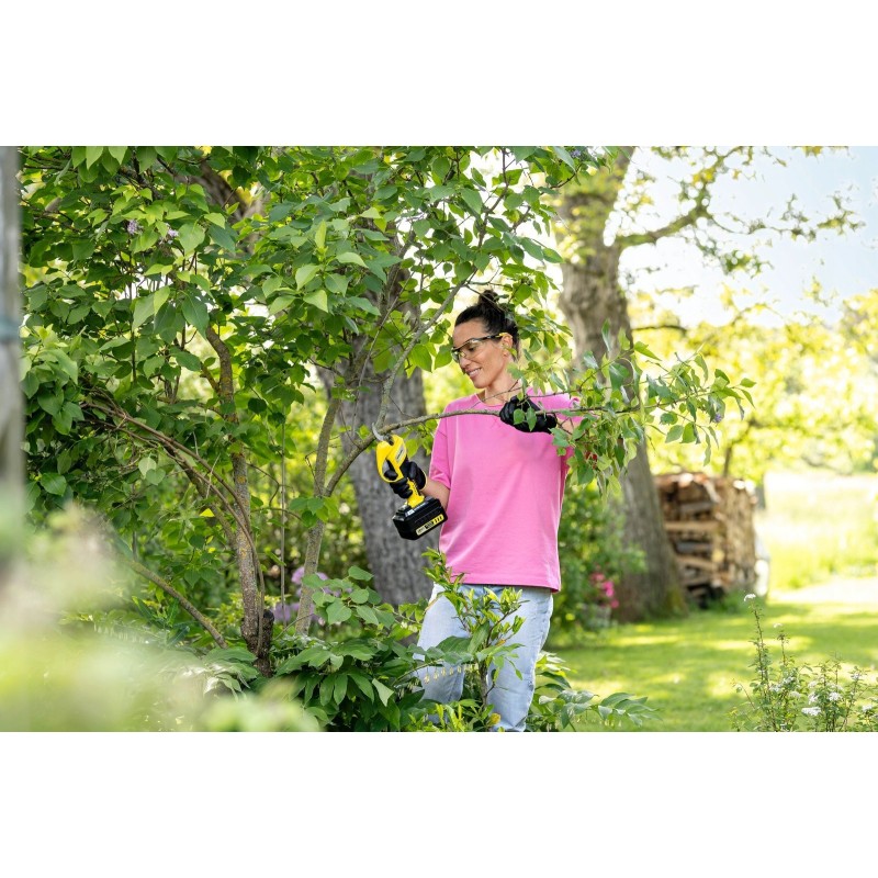 Dzięki zasilaniu akumulatorowemu bez problemu zadbaj o swoje rośliny - gałęzie o średnicy do 2,5 cm nie stanowią już trudności z akumulatorowymi nożycami do przycinania gałęzi Kärcher. Wymodelowane krawędzie zapewniają precyzję cięcia, a także zaoszczędzą Twój wysiłek. Delikatne przycinanie sprzyja również zdrowemu wzrostowi roślin. Dzięki tym nożyciom przycinanie i pielęgnacja drzew i krzewów staje się prostsza i bezpieczniejsza.