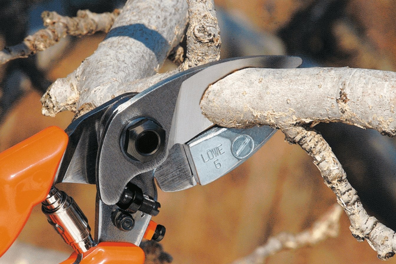 LÖWE 6 jest modelem o ulepszonej technice cięcia. Zewnętrzne ostrze można łatwo i szybko wymienić, dzięki temu, że jest zamocowane wyłącznie za pomocą jednej śruby. Już nie trzeba demontować całego sekatora.