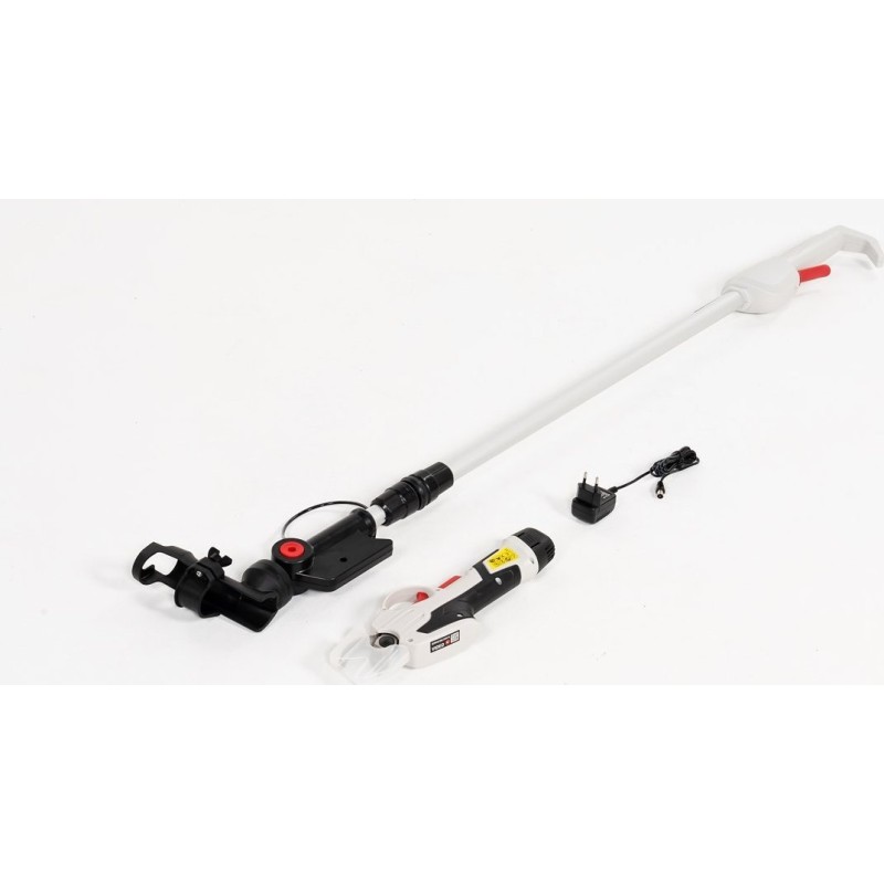 Lekki i bardzo praktyczny sekator do cięcia gałęzi NAC PRB72H-B20-JN zasilany akumulatorem 7,2 V o pojemności 2 Ah. W zestawie z wysięgnikiem o maksymalnej długości aż 320 cm.